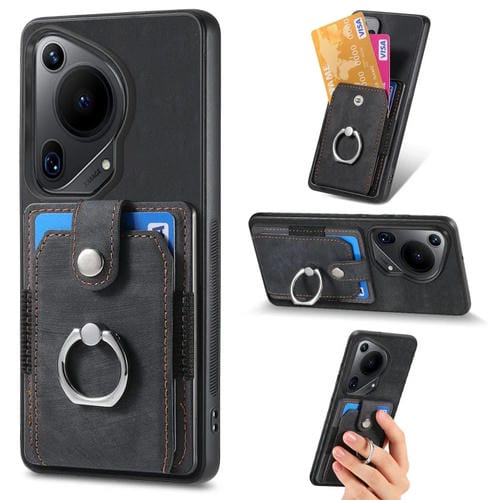 Funda para Huawei Pura 70 con Billetera, Tarjeta y Anillo con Sensación de Piel Ultra Retro (Negro)