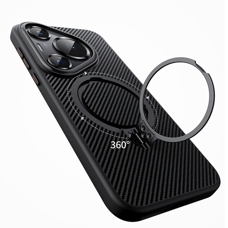 Funda para Huawei Pura 70 de Fibra de Carbono con Soporte Magsafe de Doble Anillo (Negro)