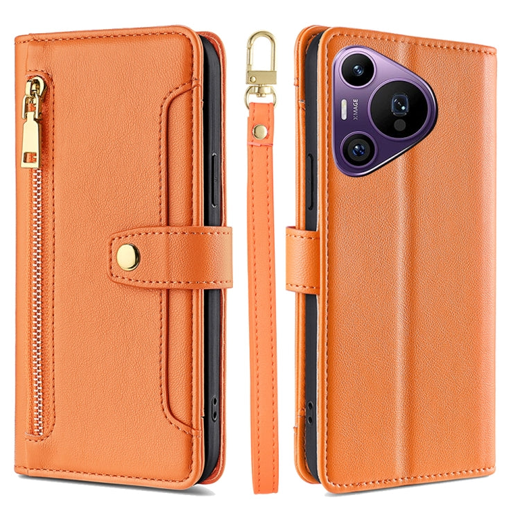 Funda de Cuero para Huawei Pura 70 Pro y 70 Pro + 5G con Billetera, Cremallera y Textura de Oveja (Naranja)