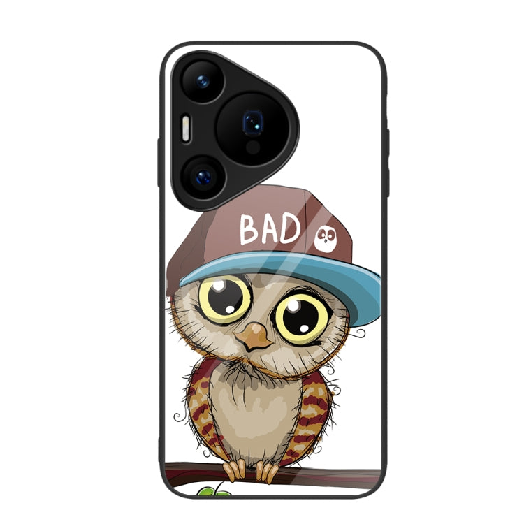 Caja de Teléfono de Vidrio Pintado para Huawei Pura 70 Pro (Búho)