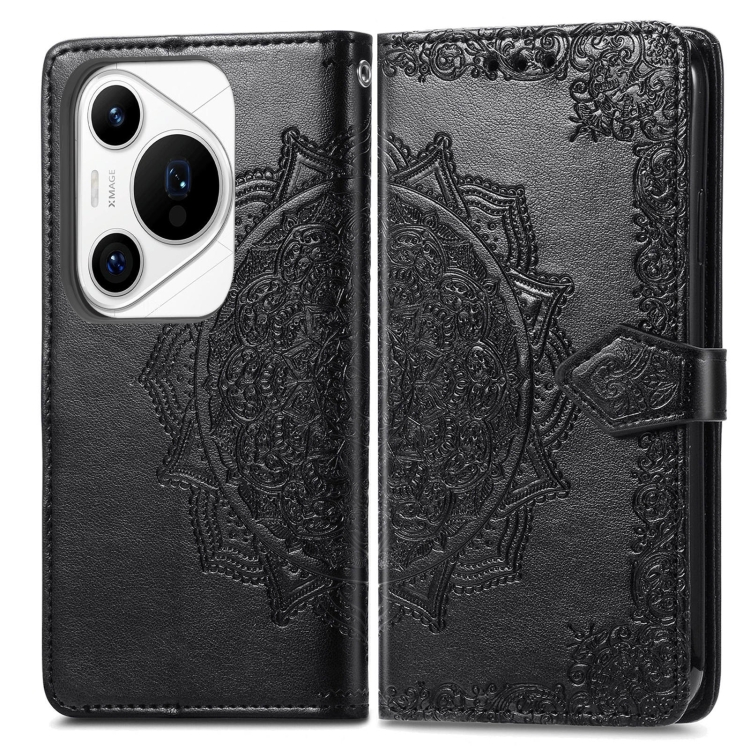 Funda para Huawei Pura 70 Pro+ de Cuero con Relieve de Flor de Mandala (Negro)