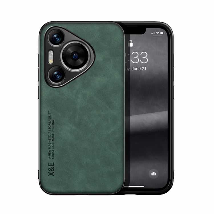Funda para Huawei Pura 70 Pro y Pura 70 Pro+ con Parte Trasera de Cuero Magnético (Verde)