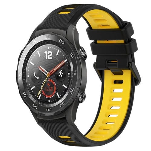 Pour Huawei Watch 2 20 mm Sports Bracelet de montre en silicone bicolore (noir + jaune)