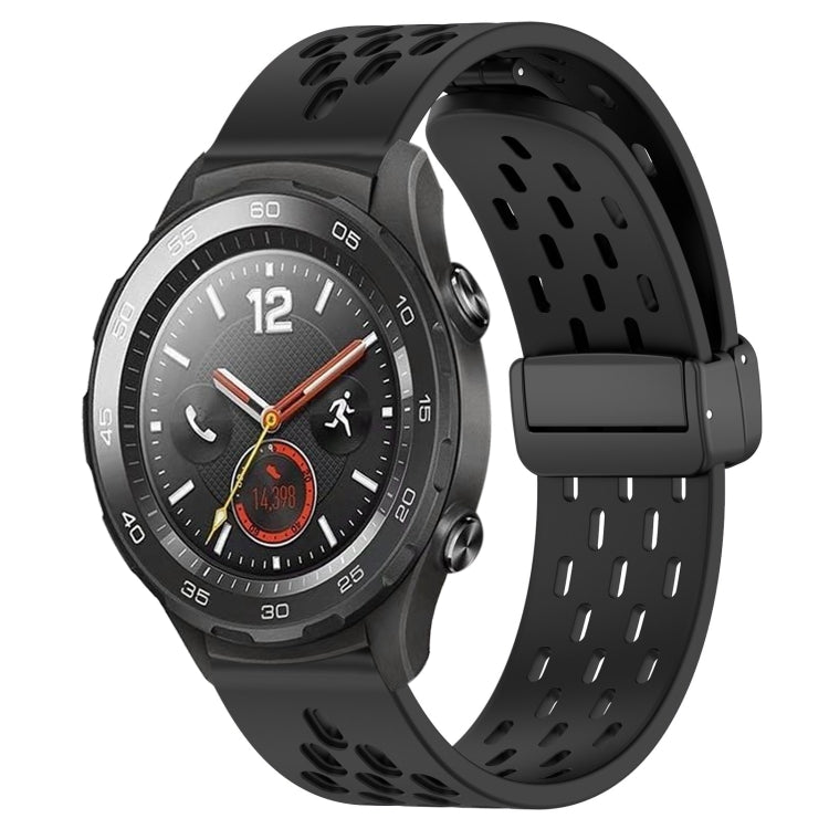 Pour Huawei Watch 2 20 mm Bracelet de montre en silicone à fermoir magnétique pliant (noir)