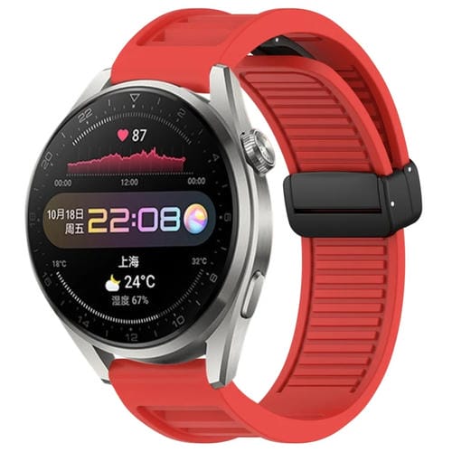 Correa de Silicona para Huawei Watch 3 Pro con Hebilla Magnética Plegable 22mm (Rojo)