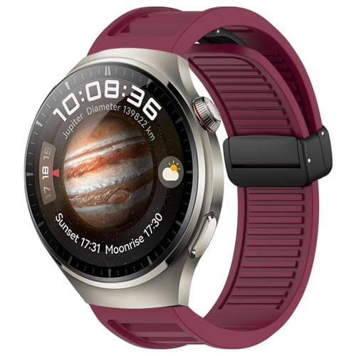 Correa de Silicona para Huawei Watch 4 Pro con Hebilla Magnética Plegable de 22mm (Rojo Vino)
