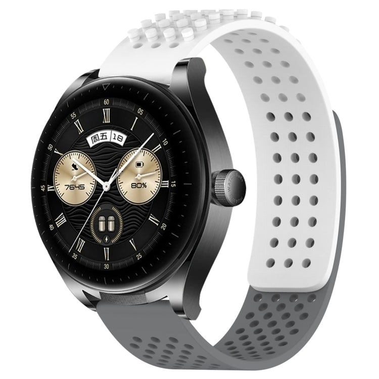 Correa de Silicona para Huawei Watch Buds con Puntos 3D Transpirables y Orificios 22mm (Blanco + Gris)