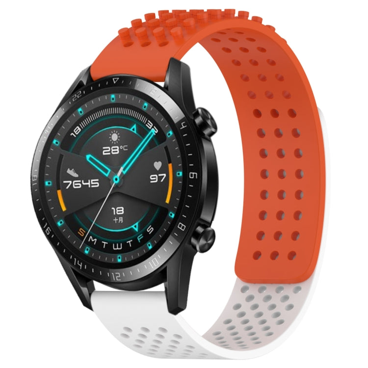 Correa de silicona para Huawei Watch GT2 42mm 20mm con puntos 3D transpirables (Naranja + Blanco)