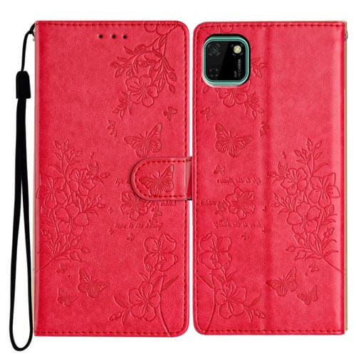 Funda para Huawei Y5P de Cuero con Relieve Flor de Amor y Mariposa (Rojo)