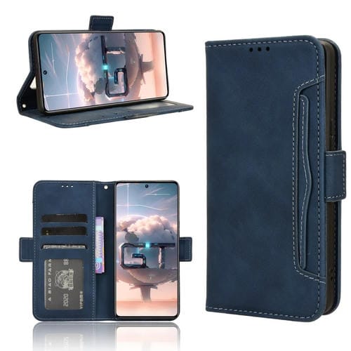 Funda de Cuero para Infinix Gt 10 Pro con Textura Skin Feel y Ranuras para Tarjetas (Azul)