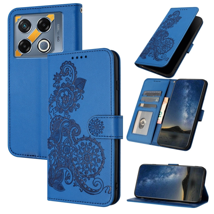 Pour Infinix GT 20 Pro Datura Flower Embossed Flip Leather Case (Bleu)
