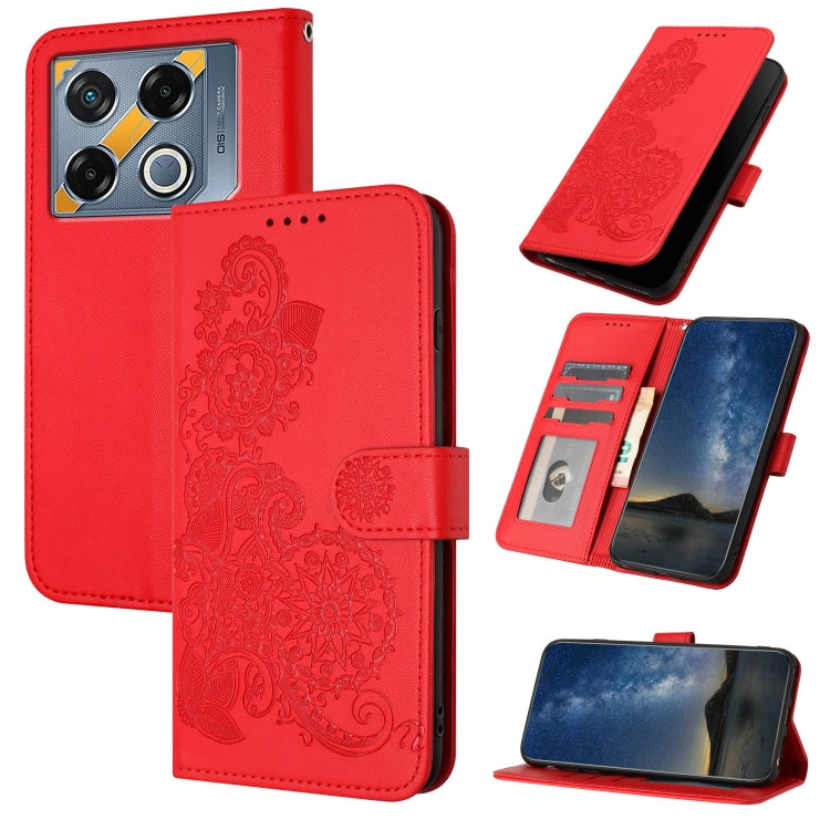 Pour Infinix GT 20 Pro Datura Flower Étui en cuir à rabat en relief (rouge)