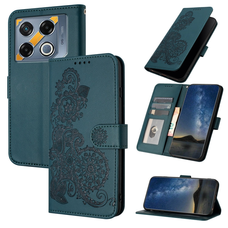 Pour Infinix GT 20 Pro Datura Flower Embossed Flip Leather Case (Vert foncé)