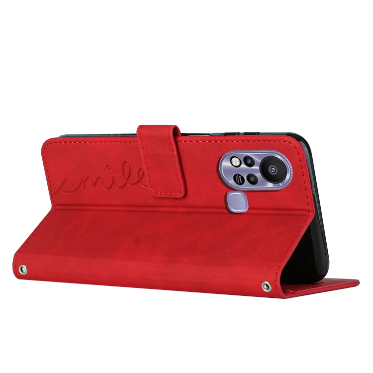 Funda para Infinix Hot 11S Skin Stent con Patrón de Corazón de Cuero (Rojo)
