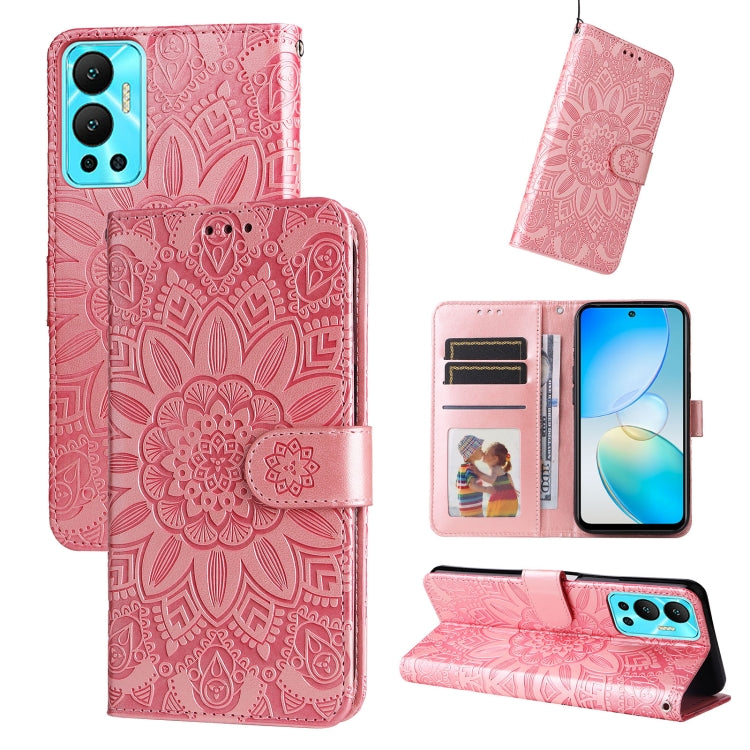 Estuche para teléfono Infinix Hot 12 de cuero con estampado de girasol en relieve (Rosa)