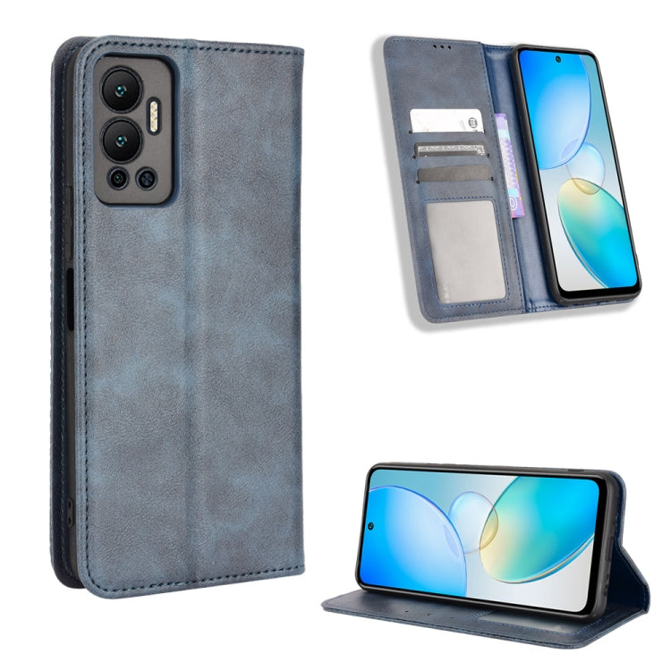 Funda de Cuero para Infinix Hot 12 con Hebilla Magnética y Textura Retro (Azul)