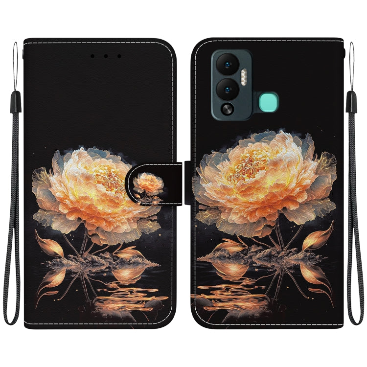 Estuche de Cuero para Infinix Hot 12 Play con Dibujo Coloreado y Textura de Cristal (Peonía Dorada)