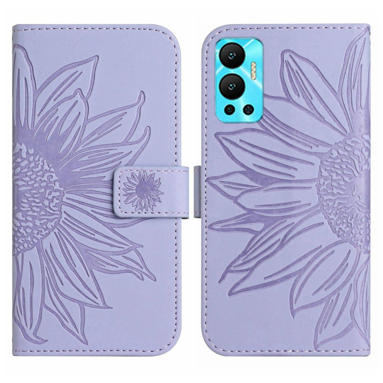 Funda Flip de Cuero para Infinix Hot 12 con Cordón y Diseño Sun Flower (Púrpura)