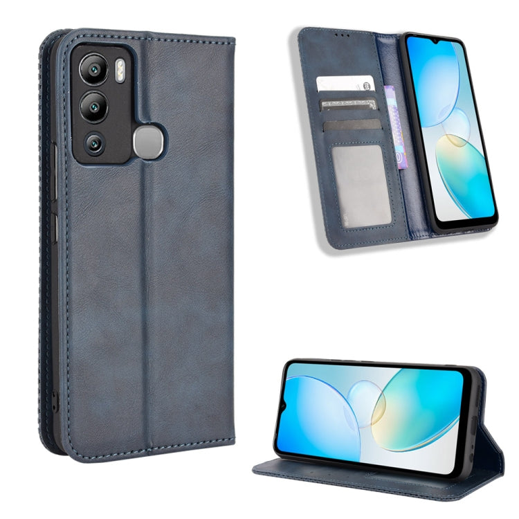 Funda de Cuero para Infinix Hot 12I con Hebilla Magnética y Textura Retro (Azul)