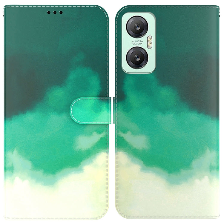 Funda de Cuero para Infinix Hot 20 con Patrón de Acuarela (Verde Cian)