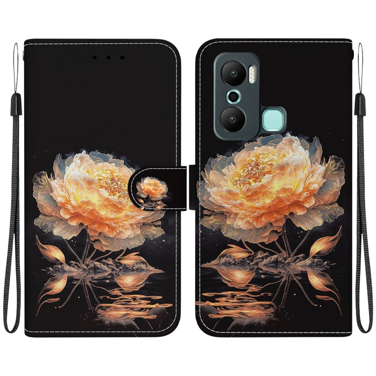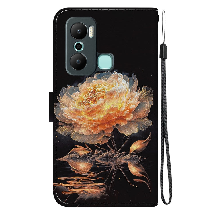 Estuche de Cuero para Infinix Hot 20 Play con Dibujo Coloreado y Textura de Cristal (Peonía Dorada)