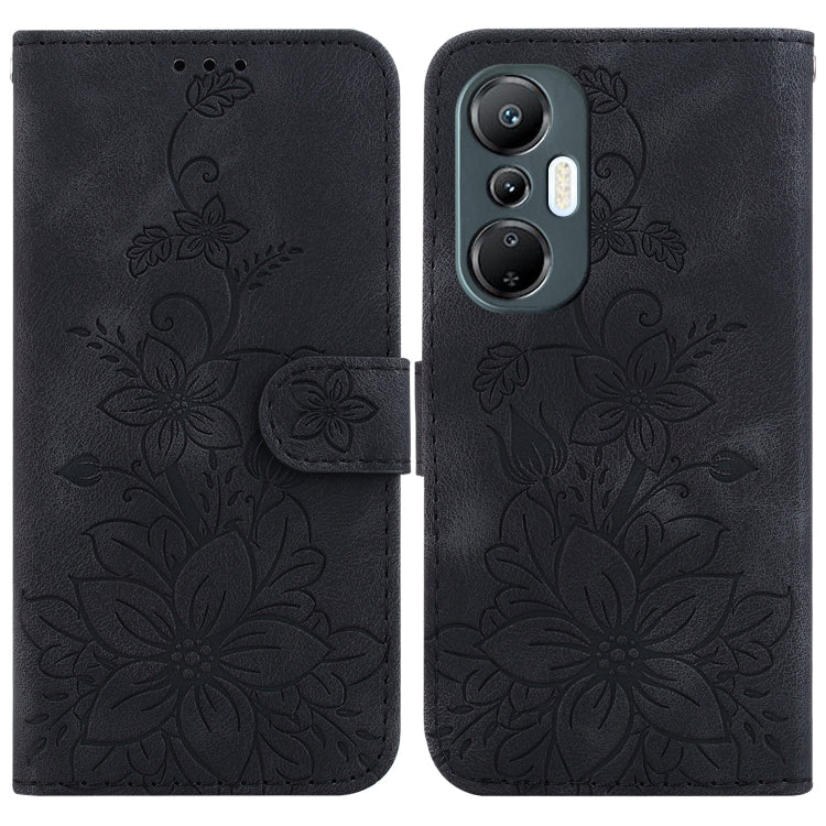 Funda de Cuero En Relieve para Infinix Hot 20S Lily para Teléfono (Negro)