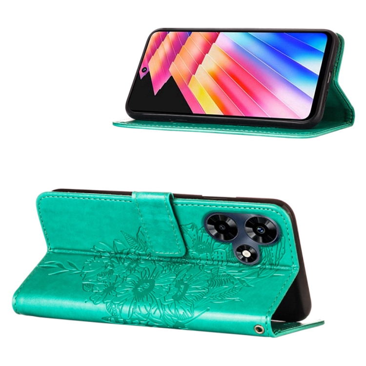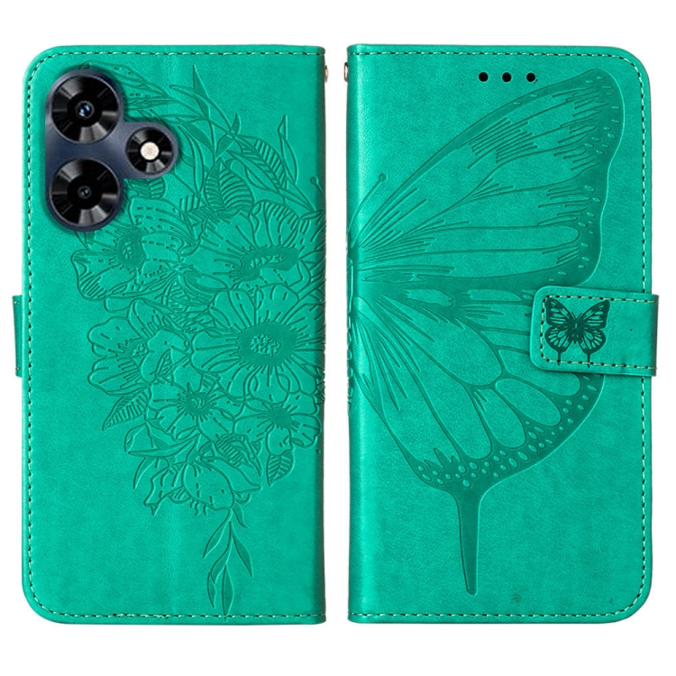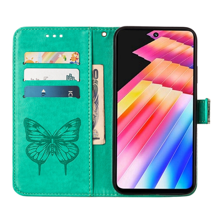 Estuche para Teléfono Infinix Hot 30 4G X6831 de Cuero con Mariposa en Relieve (Verde)
