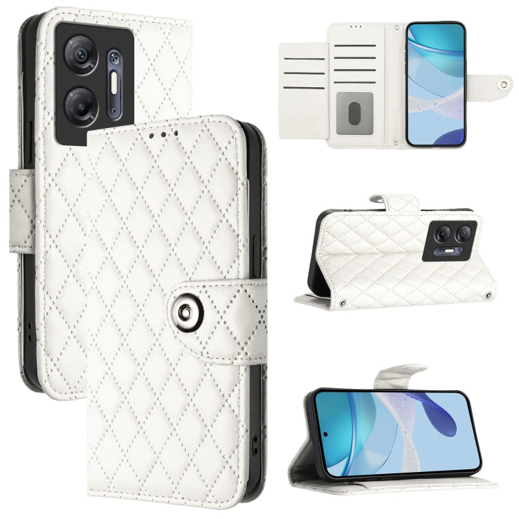 Pour Infinix Hot 30 5G Étui en cuir à rabat à texture rhombique avec lanière (blanc)