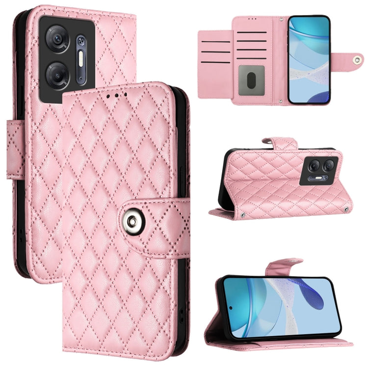 Pour Infinix Hot 30 5G Étui en cuir à rabat à texture diamant avec lanière (rose)