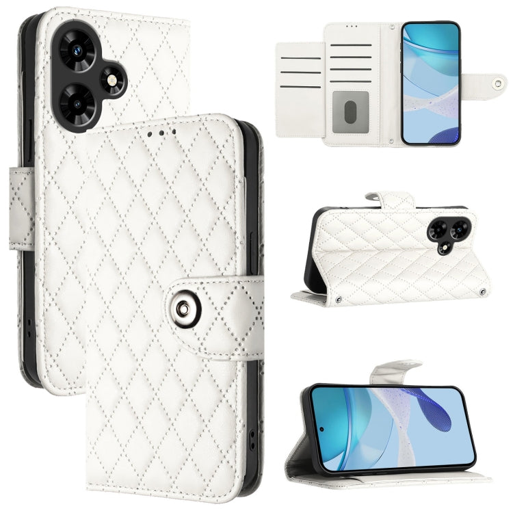 Funda para Infinix Hot 30I de Cuero con Tapa Textura Rómbica y Cordón (Blanco)