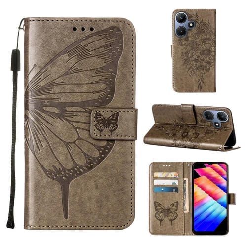 Estuche para Teléfono Infinix Hot 30I / X669 Cuero con Mariposa en Relieve (Gris)