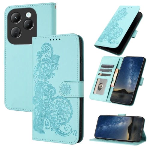 Funda de Cuero para Infinix Hot 40 Datura Flower con Tapa en Relieve (Azul Claro)
