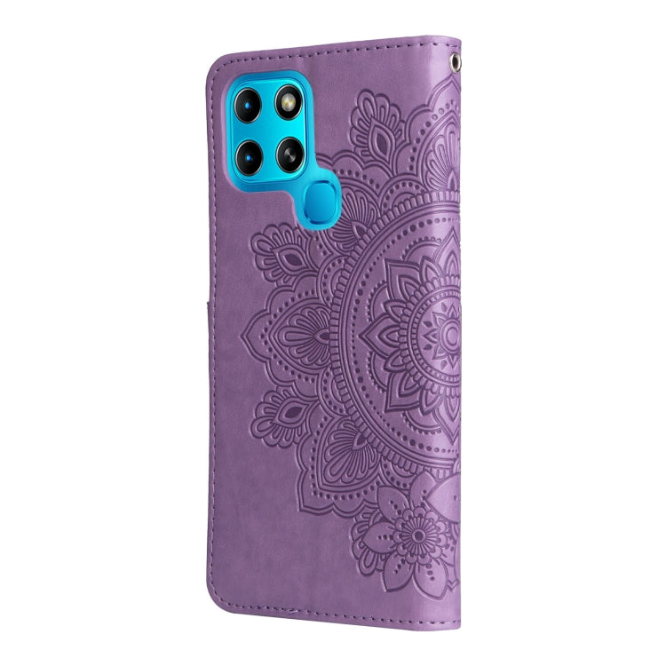 Estuche de Cuero para Infinix Inteligente 6 con Flores de 7 Pétalas en Relieve (Púrpura Claro)