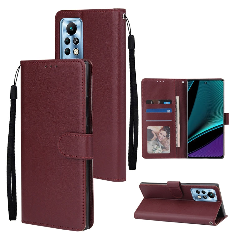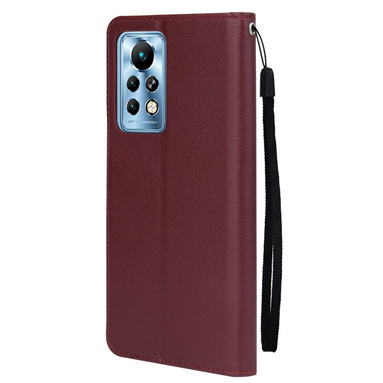 Estuche de Cuero para Infinix Note 11 Pro con Tapa Horizontal y Tres Ranuras para Tarjetas (Rojo Vino)