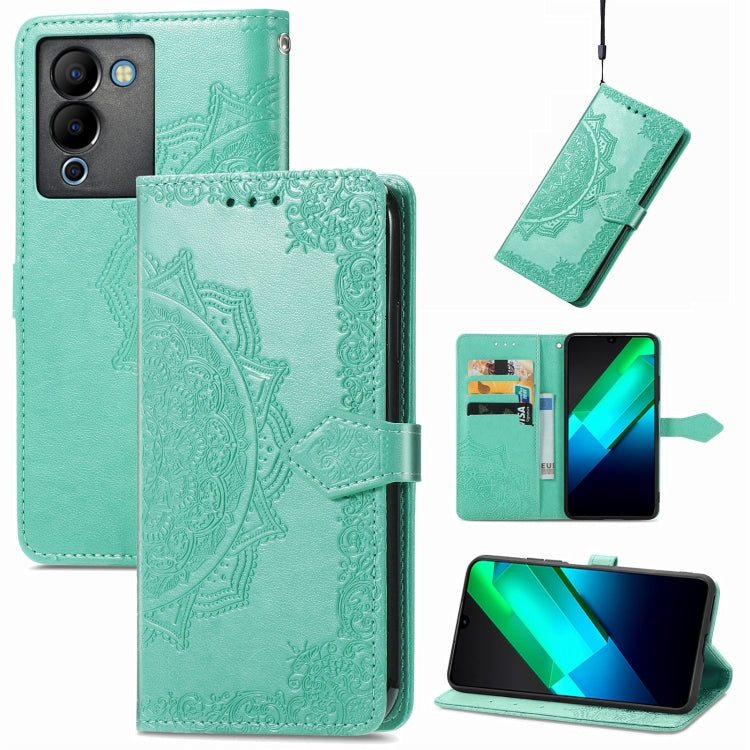 Funda de Cuero En Relieve Mandala Flower para Infinix Note 12 G96 (Verde)
