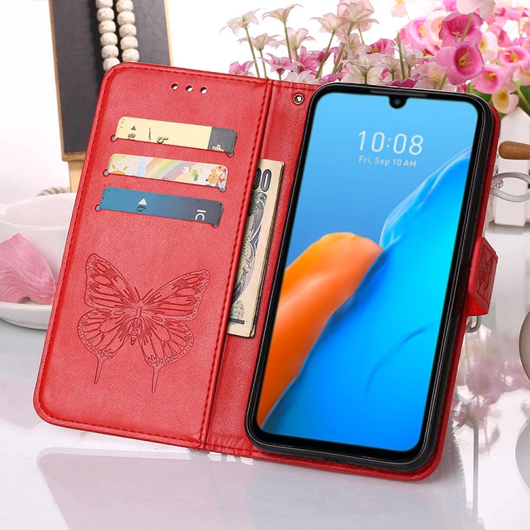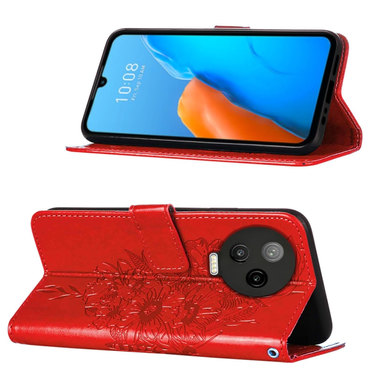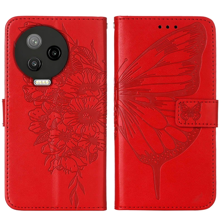 Estuche de Cuero para Infinix Note 12 Pro 4G con Tapa de Mariposa en Relieve (Rojo)