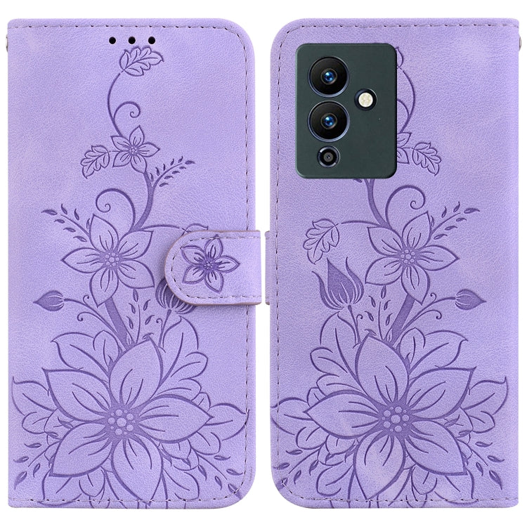 Estuche para Infinix Note 12 Pro 5G y Note 12 5G de Cuero con Relieve de Lirio (Púrpura)
