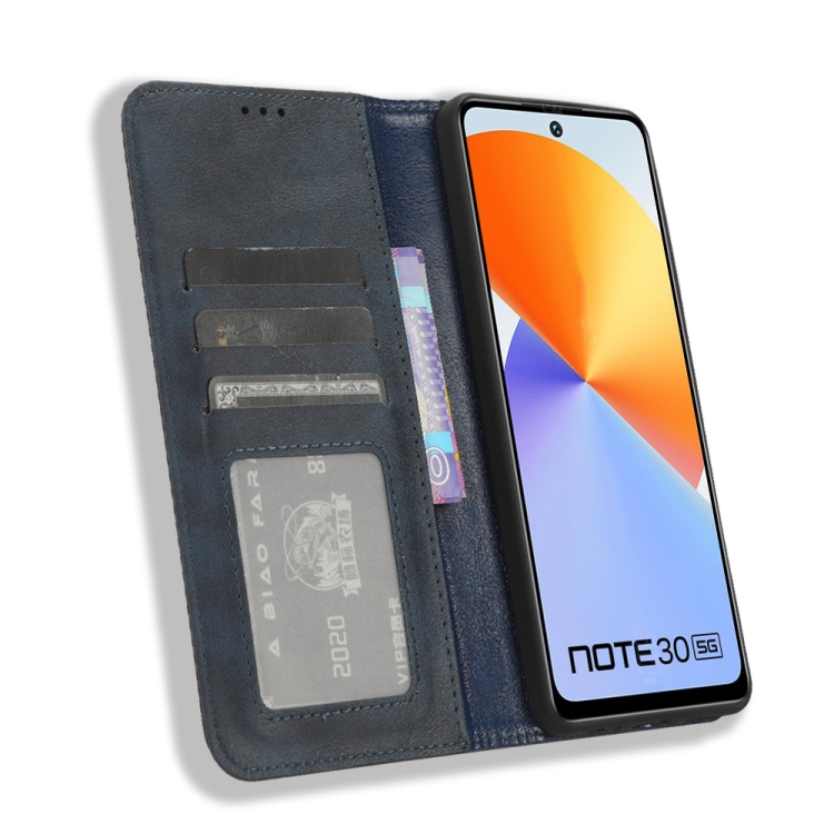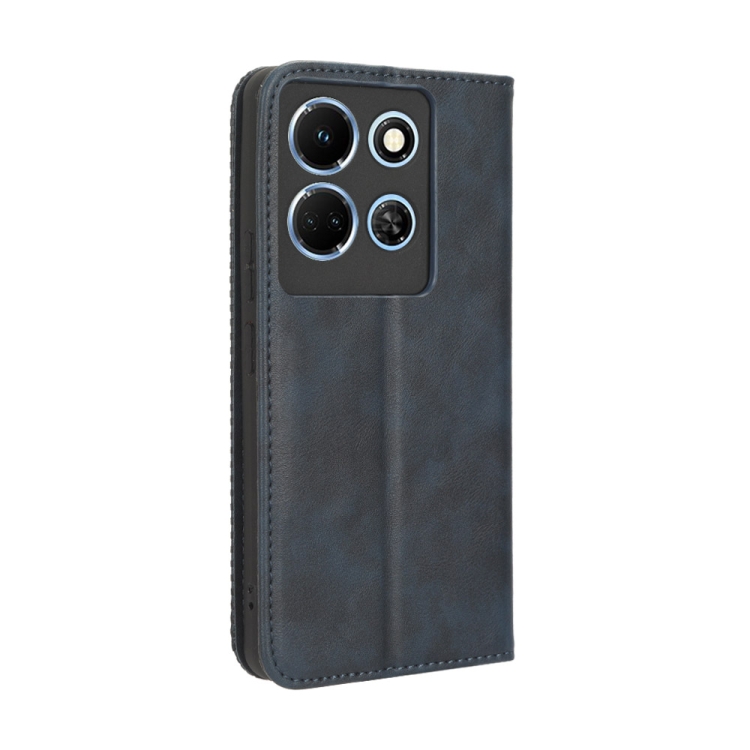 Funda de Cuero para Infinix Note 30 5G con Hebilla Magnética y Textura Retro (Azul)
