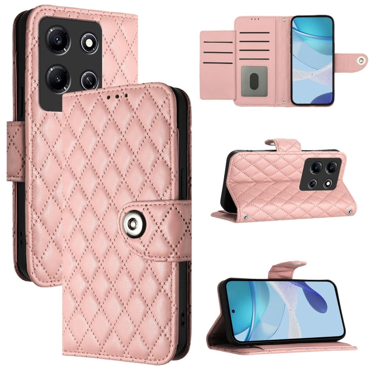 Pour Infinix Note 30i Étui en cuir à rabat à texture rhombique avec lanière (rose corail)