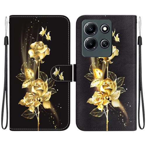 Funda de Cuero para Infinix Note 30I con Dibujo Coloreado y Textura de Cristal (Mariposa Dorada Rosa)