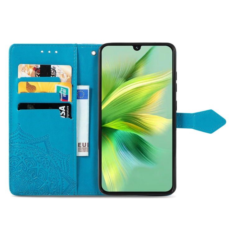Funda para Teléfono Infinix Note 30I de Cuero con Estampado de Flores Mandala (Azul)