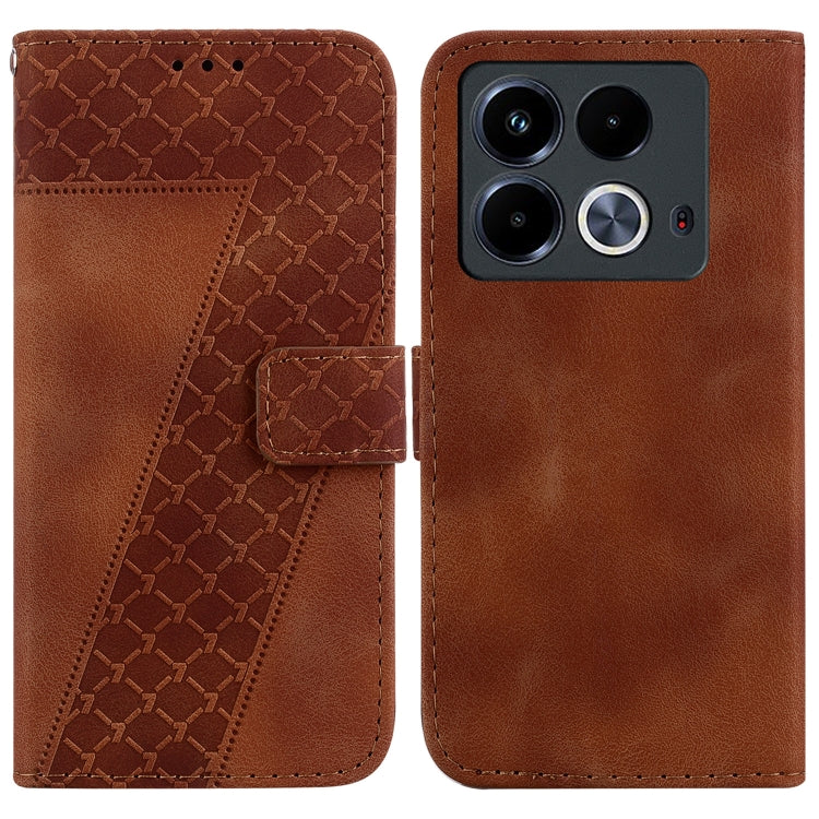 Funda de Cuero para Infinix Note 40 4G con Relieve en Forma de Siete (Marrón)
