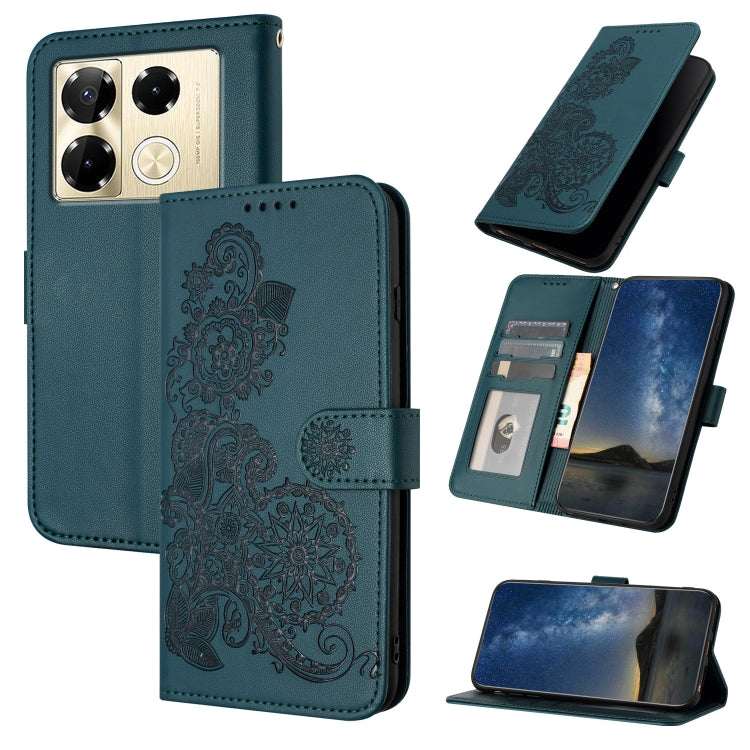 Pour Infinix Note 40 Pro 4G/5G Étui en cuir à rabat en relief avec fleur Datura (vert foncé)
