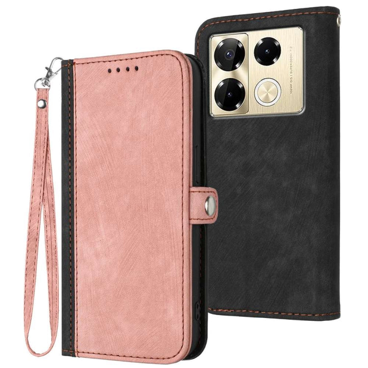 Pour Infinix Note 40 Pro 4G/5G Étui de téléphone en cuir avec dragonne à double pli et boucle latérale (rose)
