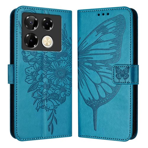 Funda de Cuero para Infinix Note 40 Pro 4G con Mariposa en Relieve (Azul)