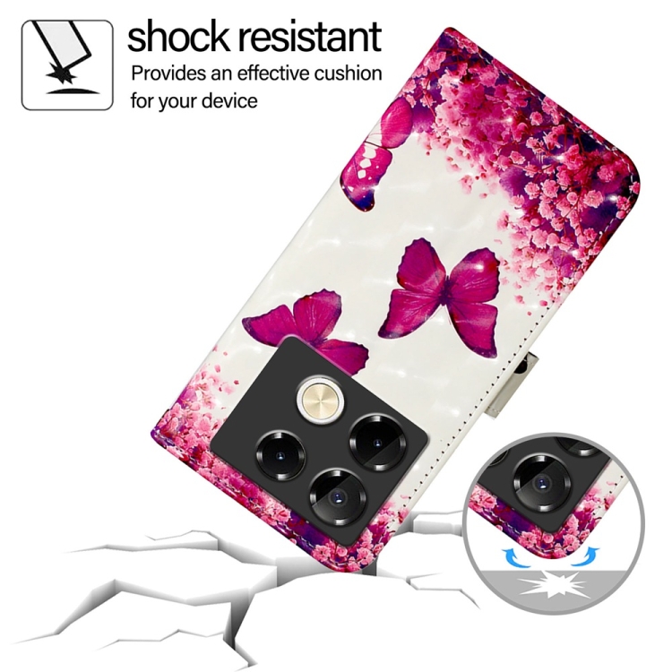Funda para Teléfono Infinix Note 40 Pro 4G de Cuero con Tapa Horizontal y Pintura 3D (Mariposa Rosa)