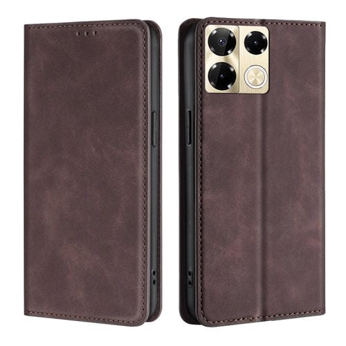 Funda de Cuero Magnética Skin Feel para Infinix Note 40 Pro 5G (Marrón Oscuro)