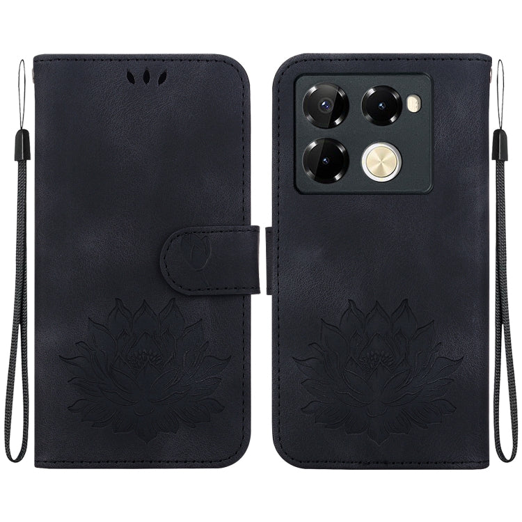 Funda de Cuero con Relieve de Loto para Infinix Note 40 Pro (Negro)