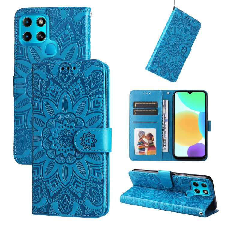 Estuche para teléfono Infinix Smart 6 Cuero con estampado de Girasol en relieve (Azul)
