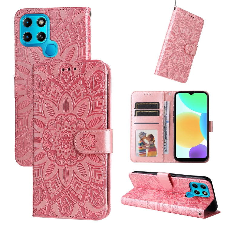 Estuche para Infinix Smart 6 de Cuero con Estampado de Girasol en Relieve (Rosa)